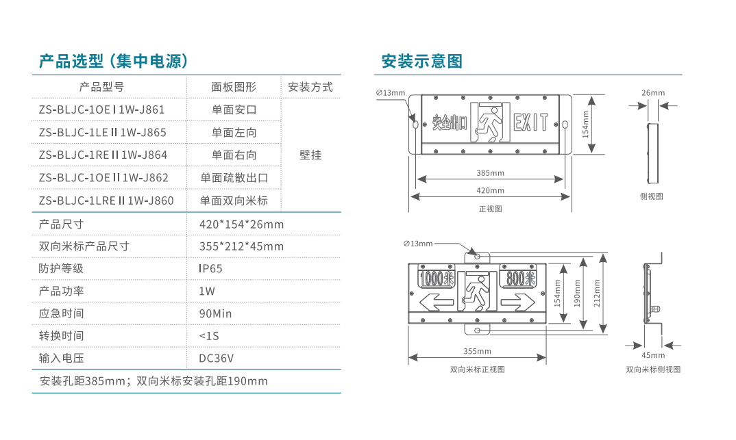 雙面單向消防應(yīng)急標(biāo)志燈 | ZS-BLJC-2LRE II 0.5W-J831 | 吊掛