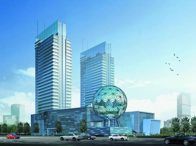 該項(xiàng)目位于內(nèi)蒙古自治區(qū)包頭市。方案造型源于“科技航母”的概念,主體建筑像一艘乘風(fēng)破浪的巨輪。建筑通過垂直和水平線條的對(duì)比,形成一種體量上的平衡感。主樓強(qiáng)調(diào)垂直線條,宛如兩面科技之帆,正推動(dòng)科技之舟乘風(fēng)破浪,遨游在知識(shí)的海洋;裙樓采用水平向條紋幕墻,大堂的玻璃頂和外墻采用兩種不同透光率的玻璃體現(xiàn)強(qiáng)烈的速度和流動(dòng)感。